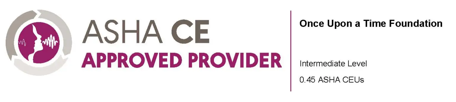 Complaint Procedure: In accordance with ASHA CE provider guidelines, individuals who complete a course provided by the Once Upon a Time Foundation may submit a complaint to the organization through email to: CAScourse@onceuponatime.org