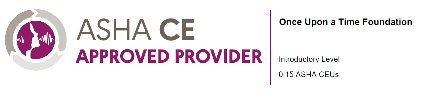Complaint Procedure: In accordance with ASHA CE provider guidelines, individuals who complete a course provided by the Once Upon a Time Foundation may submit a complaint to the organization through email to CAScourse@onceuponatime.org